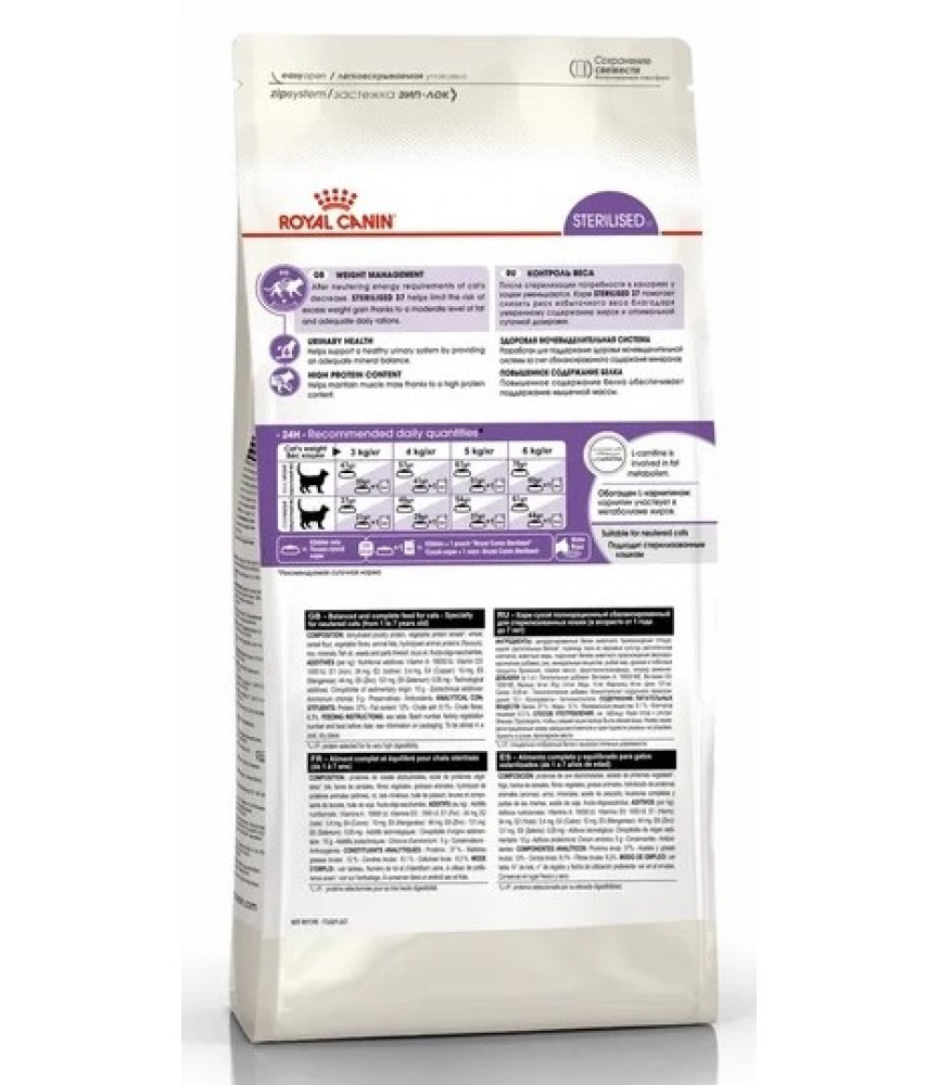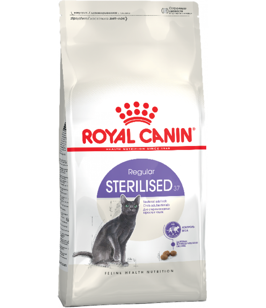 После стерилизации необходимо пересмотреть рацион кошки с учетом изменившихся потребностей в энергии. ROYAL CANIN® Sterilised 37 помогает снизить риск появления избыточного веса, благодаря умеренному содержанию жиров, при соблюдении рекомендуемых норм кормления.